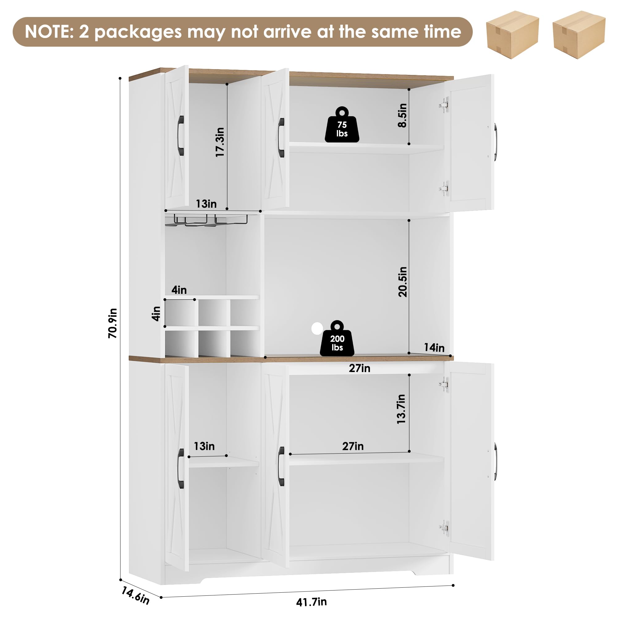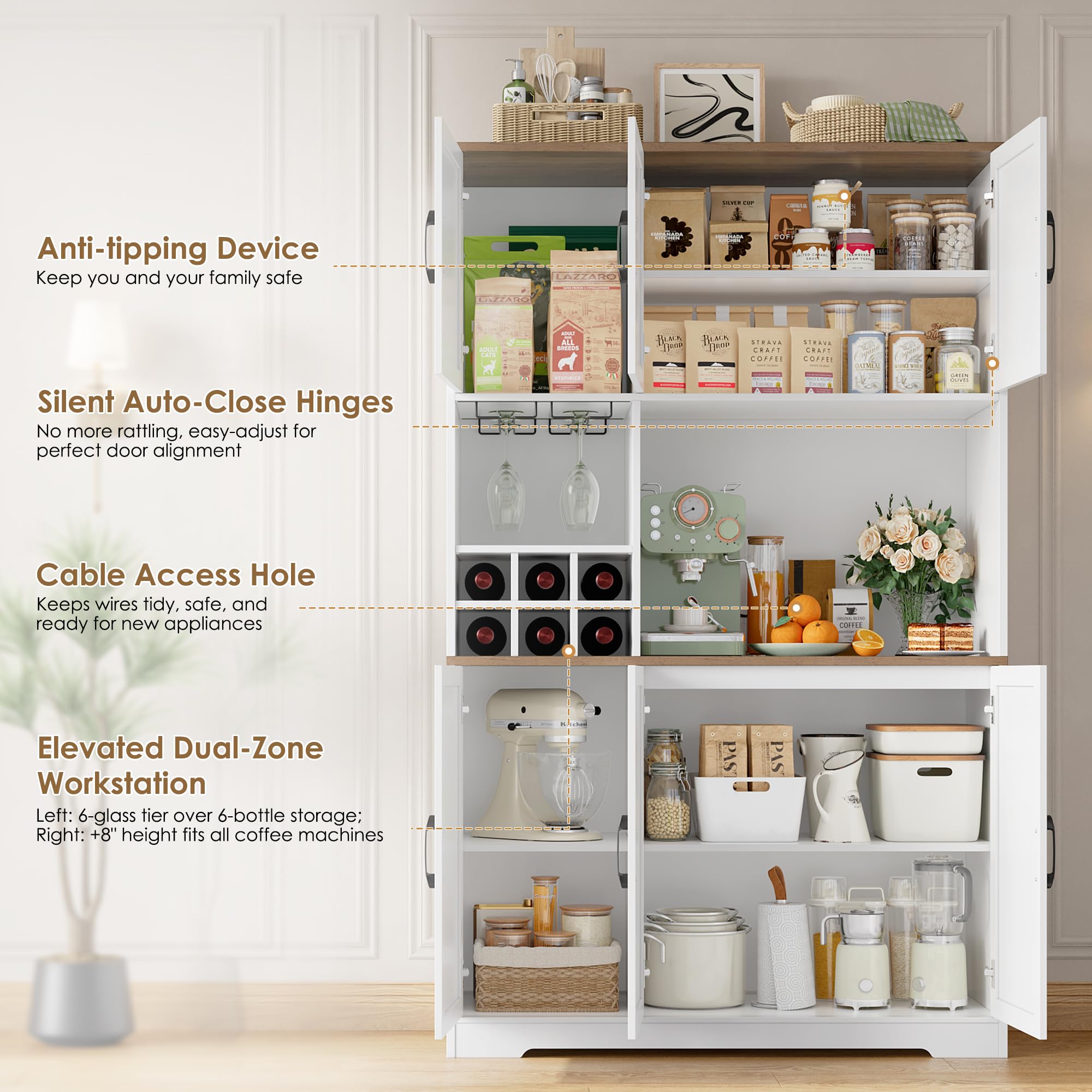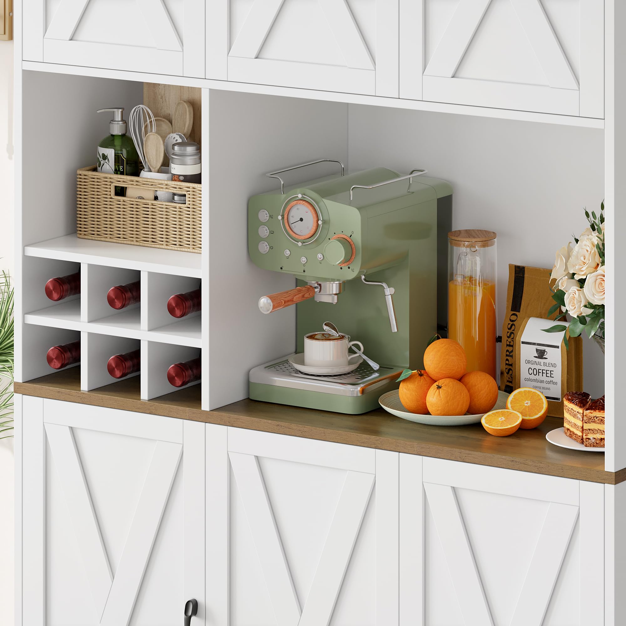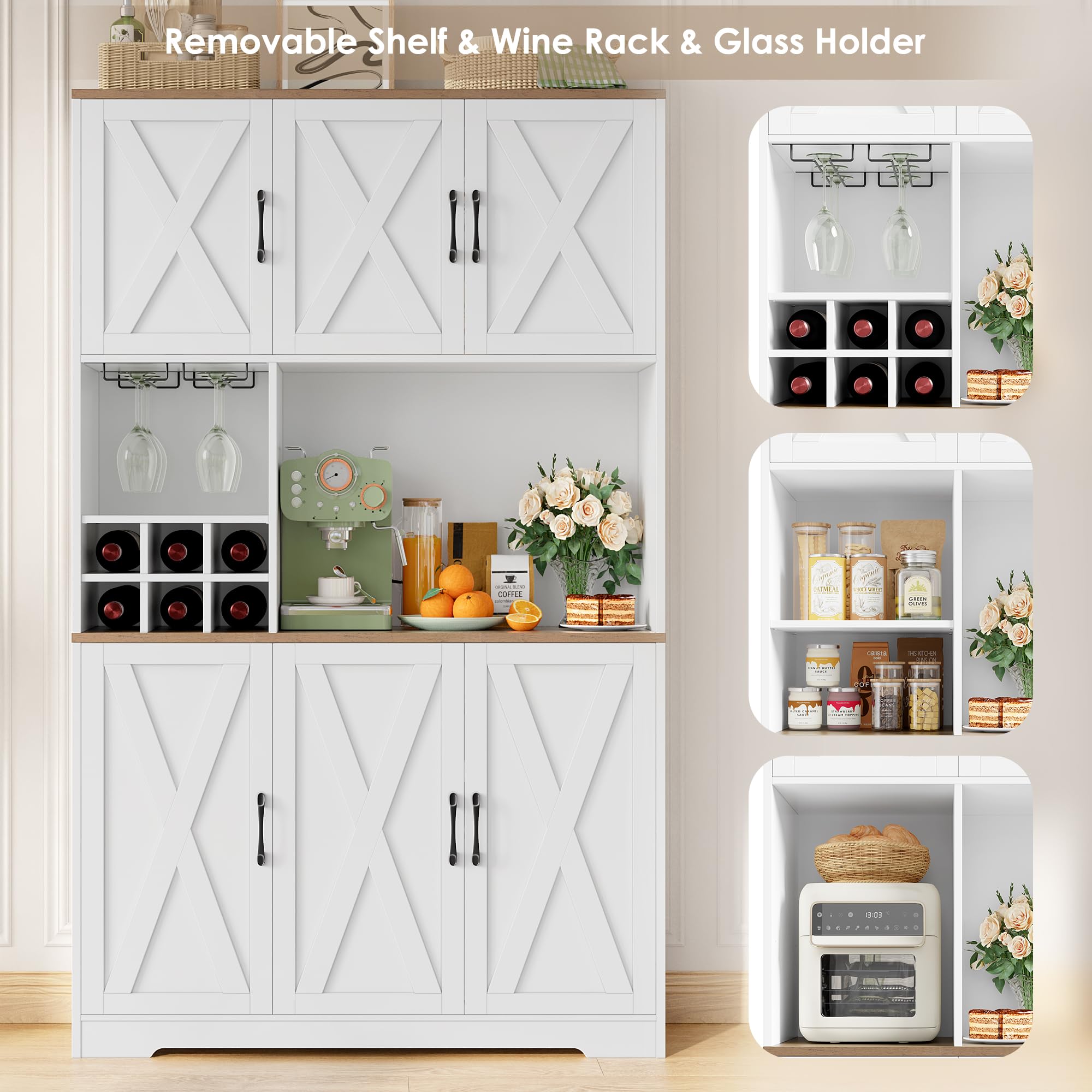 HOCSOK Küchenschrank 106x180 cm (BxH), Buffetschrank Weiß, Sideboard mit 6 Türen, Abnehmbarem Flaschenhalter und Abnehmbarem Glashalter, Vorratsschrank für Küche, Wohnzimmer, Esszimmer, 180 x 106 x 37